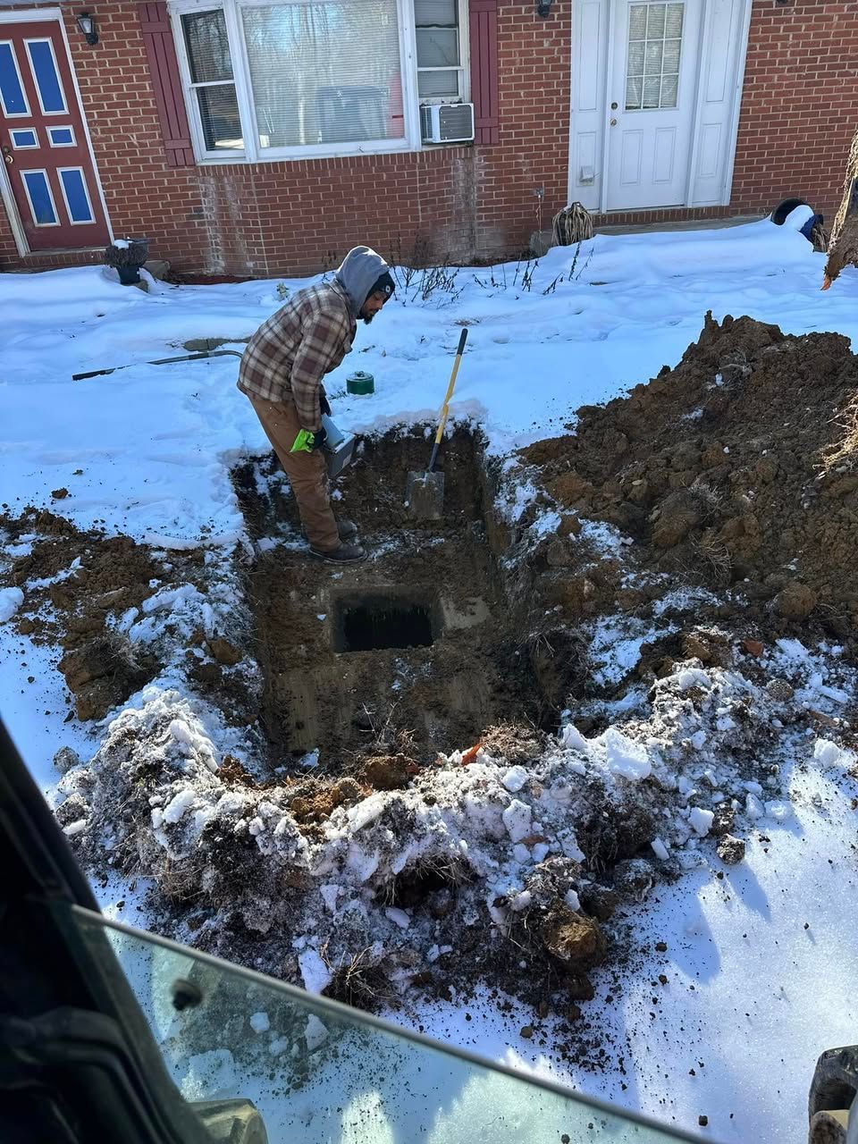 Perc test in the snow.. Tank repairs.. Inspections.. Jetting.. We’re not letting this weather affect us from getting things done!!